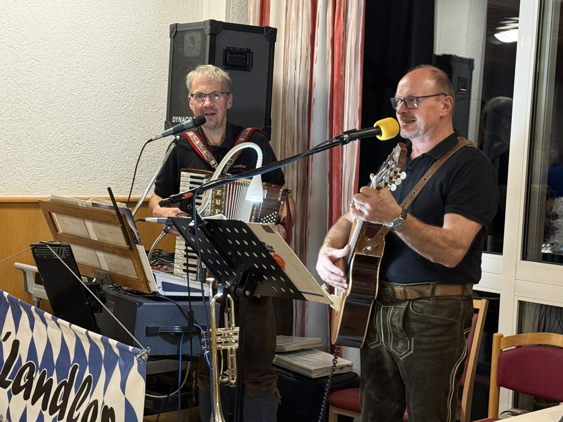 Bei zünftiger Musik, fröhlicher Stimmung und einer traditioneller Brotzeit genossen Gäste und Heimbewohner gemeinsam einen heiteren Abend. Für die musikalische Umrahmung sorgten die Landler Hubert Hillenbrand und Günter Maurer, die mit bekannten Melodien zum Mitsingen, Schunkeln und Tanzen einluden. Schon bald hallten fröhliche Klänge und herzhaftes Lachen durch den Saal.